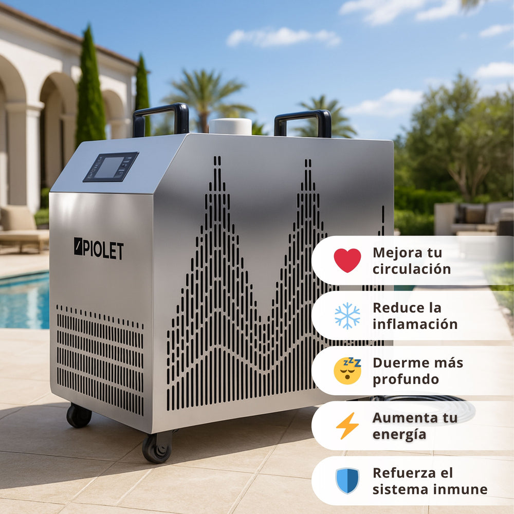 El PIOLET Polar PRO eleva el estándar en enfriadores profesionales. Con sistema dual de frío y calor (3 °C a 42 °C), sanitización por ozono y operación ultra silenciosa, ofrece un rendimiento térmico inigualable incluso en climas extremos. Diseñado para uso rudo, control remoto vía Wi-Fi y máxima limpieza con su sistema de filtración avanzada, es la opción definitiva para sesiones exigentes de recuperación.